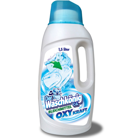 Жидкий отбеливатель Der Waschkönig C.G. Flüssiges Bleichmittel можно использовать как для стирки, так и для замачивания. Активная формула гарантирует эффективное удаление пятен и защищает белые ткани от появления серого оттенка.