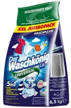 Порошок Der Waschkönig C.G. Universal предназначен для стирки цветных изделий в разных видах стиральных машин. Der Waschkönig C.G. Color эффективно удаляет пятна и заботится о цветах тканей, предотвращая их выцветание. Имеет приятный аромат и очень хорошо растворяется в воде. Средство не содержит вредных цеолитов и фосфатов, поэтому не вызывает аллергию и раздражения кожи. Благодаря специальным компонентам, порошок защищает элементы стиральной машины от образования накипи. Работает при температурах 30-60°С.